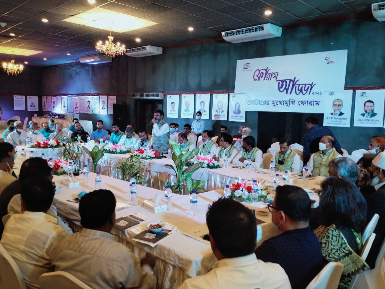 ফোরাম চট্টগ্রাম সেক্রেটারী এম এ সালামের সভাপতিত্বে ও প্রধান নির্বাচন পরিচালনা সমন্বয়ক আবদুল মান্নান রানা’র সন্ছালনায় আয়োজিত উক্ত অনুষ্ঠানে বিভিন্ন গার্মেন্টস মালিকরা উপস্থিত ছিলেন। এ-সময় বক্তারা বলেন, করোনা দূর্যোগে মাননীয় প্রধানমন্ত্রীর সময়োপযোগী প্রণোদনা সিদ্ধান্ত গার্মেন্টস শিল্পকে মহাসংকট থেকে রক্ষা করে। বিজিএমইএ এর সভাপতি রুবানা হকের সঠিক নেতৃত্বে সঠিক সময়ে গার্মেন্টস ফ্যাক্টরীগুলো খুলে দেওয়ার সিদ্ধান্ত ছিল পোশাক শিল্পকে ঘুরে দাঁড়ানোর সঠিক পদক্ষেপ । যা বাংলাদেশের অর্থনৈতিক প্রবৃদ্ধি অর্জন ও উন্নয়ন প্রক্রিয়ায় গতি রাখে অব্যাহতভাবে। বাংলাদেশের আর্থসামাজিক উন্নয়নে গার্মেন্টস সেক্টর এখনো বড় ভূমিকা রাখছে। এই ধারাবাহিকতায় আসন্ন নির্বাচনে ফোরাম মনোনীত প্যানেল জয়লাভ করবে তারা আশাবাদ ব্যক্ত করেন। এ সময় আরো উপস্থিত ছিলেন সমন্বয়ক ইমাম হোসেন, সাইফুল আজম সিজার, এম এ সিদ্দিক চৌধুরী,এস এম জাহিদ চৌধুরী, আরশাদুর রহমান, বশির উদ্দিন আহমদ, শফিকুল ইসলাম টিটু, মোয়াজ্জেম হায়দার সামির,আকবর খান, এমকেএম সালাউদ্দিন,মোর্শেদ কাদের, কায়কোবাদ, নজরুল ইসলাম , রেজওয়ান ইসলাম,মো ইলিয়াছ,মোঃ মুছা, মোঃ গিয়াসুদ্দিন, নুরুল ইসলাম মিঠু, শফিকুল ইসলাম সুমন, ওয়াদুদ মোহাম্মদ, আবদুল কাদের, আবদুর রাজ্জাক, রায়হান সামস্, মোহাম্মদ হোসাইন সহ শতাধিক গার্মেন্টস মালিক।