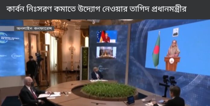 আমেরিকা যুক্তরাষ্ট্রের প্রেসিডেন্ট জো বাইডেনের সভাপতিত্বে বিশ্বের ৪০ টি দেশের অংশগ্রহণে শুরু হয়েছে জলবায়ু সম্মেলন। বৃহস্পতিবার(২২ এপ্রিল) শুরু হওয়া দুই দিনের এই অনলাইন কনফারেন্সে ৪০টি দেশের নেতারা যোগ দেন। তারা সম্মেলনে জলবায়ু সংক্রান্ত সমস্যা সমাধানের জন্য বিভিন্ন পরামর্শ দেন। ‘লিডার্স সামিট অন ক্লাইমেট’ নামে এই সম্মেলনে বাংলাদেশের প্রধানমন্ত্রী শেখ হাসিনা ধারণকৃত ভিডিও বার্তায় কার্বন নিঃসরণ কমাতে উন্নত দেশগুলোকে দ্রুত কর্মপরিকল্পনা প্রণয়নের আহ্বান জানান। প্রধানমন্ত্রী বলেন, “বৈশ্বিক তাপমাত্রা বৃদ্ধির হার ১.৫ ডিগ্রি সেলসিয়াসে রাখার জন্য উন্নত দেশগুলোকে কার্বন নিঃসরণ কমাতে দ্রুত ও উচ্চাকাঙ্ক্ষী কর্মপরিকল্পনা প্রণয়নের পাশাপাশি উন্নয়নশীল দেশগুলোকেও ঝুঁকি নিরসন ব্যবস্থায় মনোনিবেশ করা উচিত।”