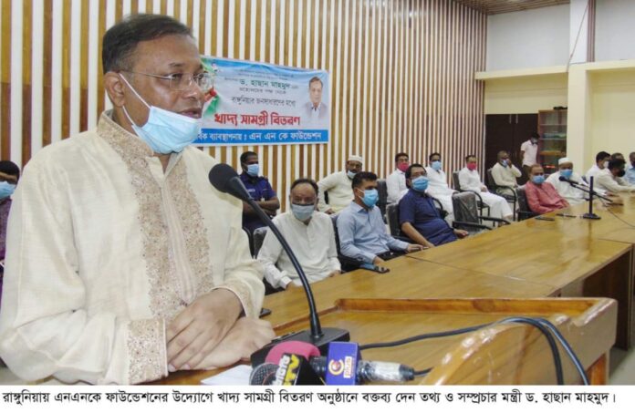 শনিবার (০১ মে) চট্টগ্রামের রাঙ্গুনিয়ায় তথ্য মন্ত্রীর ব্যক্তিগত উদ্যোগে করোনা ভাইরাসের কারণে সৃষ্ট লকডাউন পরিস্থিতিতে খেটে খাওয়া দিনমজুর ও দরিদ্রদের মাঝে খাদ্র্য সামগ্রী বিতরণ অনুষ্ঠানে প্রধান অতিথির বক্তব্যে তিনি এসব কথা বলেন।