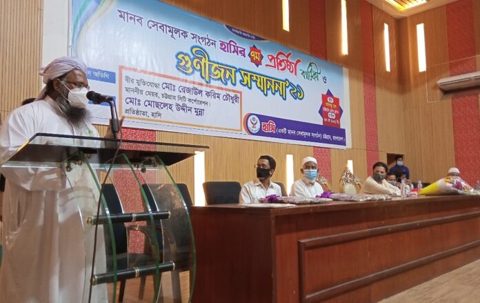প্রতিটি দানই আল্লাহর সন্তুষ্টির জন্য। মানুষ সন্তুষ্ট হলেই আল্লাহ সন্তুষ্ট হন। কিন্তু সেই দান হতে হবে, নীরবে, নিভৃতে। কোন লোক দেখানো নয়। কারন আল্লাহ সব জানেন ও দেখেন। মানব সেবামুলক সংগঠন হাসি’র প্রতিষ্ঠাবার্ষিকী ও গুণীজন সম্মাননা’২১ অনুষ্ঠানে প্রধান অতিথির বক্তব্য কথাগুলো বলেন চট্টগ্রাম বিশ্ববিদ্যালয়ের ডিপার্টমেন্ট অব কম্পিউটার সাইন্স এন্ড ইঞ্জিনিয়ারিং এর সাবেক চেয়ারম্যান ড.অসিউর রহমান। তিনি আরো বলেন, হাসি’র মানবসেবা মূলক কাজগুলো অনেকটা নীরবেই হয়। তাই তাদের কে আমি সাধুবাদ জানাই। আল্লাহ তাদেরকে আরো জনসেবা করার শক্তি ও সামর্থ্য যেন দেন, এই দোয়াই করি। আমরা যদি যার যার অবস্থান থেকে মানুষের কল্যাণে কাজ করে যাই, তবেই গড়ে উঠবে এক মানবিক ও আলোকিত সমাজ। এই মানবিক সমাজ বিনির্মানে হাসি আরো এগিয়ে যাবে, সেই প্রত্যাশাই করি। আমি হাসি’র প্রতিষ্ঠাতা সৌদি প্রবাসী মোছলেহ উদ্দিন মুন্না সহ সকল কর্মকর্তা ও সদস্যদের সংগঠনের প্রতিষ্ঠা বার্ষিকীতে অভিনন্দন জানাই। সোমবার (২৪ মে) চট্টগ্রাম প্রেস ক্লাবের বঙ্গবন্ধু হলে হাসি’র প্রতিষ্ঠাতা সভাপতি মোছলেহ উদ্দিন মুন্না’র সভাপতিত্বে ও সাংগঠনিক সম্পাদক আনিছুল ইসলাম সৌমিক এর সঞ্চালনায় উক্ত অনুষ্ঠানে চট্টগ্রাম প্রেস ক্লাবের সাধারণ সম্পাদক চৌধুরী ফরিদ. ৩৫ নং ওয়ার্ড কাউন্সিলর হাজি নুরুল হক,৩৪ নং ওয়ার্ড কাউন্সিলর পুলক খাস্তগীর, ২১ নং জামাল খান ওয়ার্ড কাউন্সিলর সৈবাল দাশ সুমন,১৪ নং ওয়ার্ড কাউন্সিলর আবুল হাসনাত বেলাল কে হাসির পক্ষ হতে ক্রেস্ট প্রদান করা হয়। অনুষ্ঠানে আরো উপস্থিত ছিলেন- মিডিয়া ব্যক্তিত্ব সরোয়ার আমিন বাবু, আলী আব্বাচ,নিজাম উদ্দিন কাজল,মোহাম্মদ সেলিম উদ্দিন,মোহাম্মদ মহিউদ্দিন, মোহাম্মদ মোর্শেদ আলম,আব্দুন নুর,মোহাম্মদ দস্তগীর, মোহাম্মদ জসিম,আবুল হাসনাত রাসেল, সুলতান মাহমুদ,শহিদুল আলম লিটন,মাহফুজ রাশেদ,মোহাম্মদ লিটন,সাইফ উদ্দিন,ইরফানুল হিমেল,তোফাজ্জল রুকন,আশরাফ জামান,তৌহিদুল ইসলাম,মোহাম্মদ তারেক. সৌরভ সেন,তাছিন ও সামি প্রমুখ।