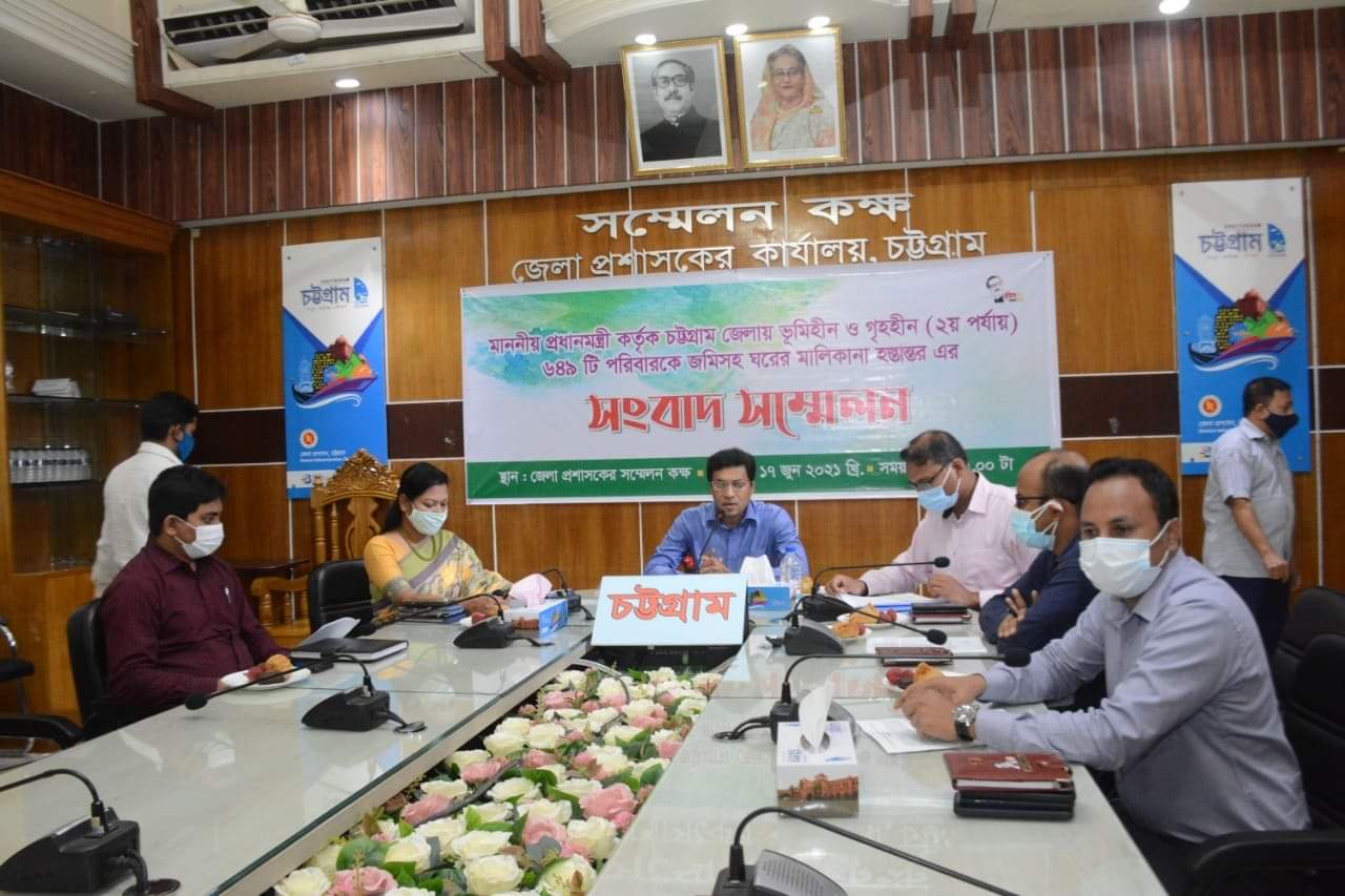 ডিসি বলেন, মাননীয় প্রধানমন্ত্রীর কার্যালয়ের আশ্রয়ণ-২ প্রকল্প থেকে প্রদত্ত নমুনা মোতাবেক কবুলিয়ত দলিল, নামজারী, ও গৃহ প্রদানের সনদ প্রতিটি উপকারভোগীদের মাঝে পৃথক ফোল্ডার করে হস্তান্তরের জন্য প্রস্তুুত রাখা হয়েছে। গৃহ প্রদান কার্যক্রমের উদ্বোধনী অনুষ্ঠানের পূর্বে চট্টগ্রাম জেলার ১৫ উপজেলার মধ্যে ১৩টি উপজেলায় মোট ৬৪৯টি ঘর প্রস্তÍুত করা হয়েছে। তন্মধ্যে রাঙ্গুনিয়া উপজেলায় ৫০টি, পটিয়া উপজেলায় ৩০টি, চন্দনাইশ উপজেলায় ২৭টি, সাতকানিয়া উপজেলায় ১০টি, লোহাগাড়া উপজেলায় ১৫০টি, বাঁশখালী উপজেলায় ১৪টি, কনর্ফুলী উপজেলায় ৫টি, বোয়ালখালী উপজেলায় ২০ টি, রাউজান উপজেলায় ২৪৮টি, হাটহাজারী উপজেলায় ১০টি, আনোয়ারা উপজেলায় ৫০টি, মীরসরাই উপজেলায় ২৫টি, সীতাকুন্ড উপজেলায় ১০টি। রাঙ্গুনিয়া উপজেলার বেতাগী ইউনিয়নের বহলপুর গ্রামে আগামী ২০ জুন ২০২১ ইংরেজি রোববার সকাল সাড়ে ১০টায় মাননীয় প্রধানমন্ত্রীর ভিডিও কনফারেন্সে উপস্থিত থাকবেন মাননীয় তথ্য ও সম্প্রচার মন্ত্রী, ভূমি মন্ত্রী, মাননীয় শিক্ষা উপমন্ত্রী, সংসদ সদস্য, বীর মুক্তিযোদ্ধাগণ, বিশিষ্ট রাজনৈতিক ব্যক্তিবর্গ, সুশীল সমাজের প্রতিনিধি, প্রিন্ট ও ইলেকট্রনিক মিডিয়ার সাংবাদিকবৃন্দসহ বিভিন্ন শ্রেণি-পেশার মানুষ।