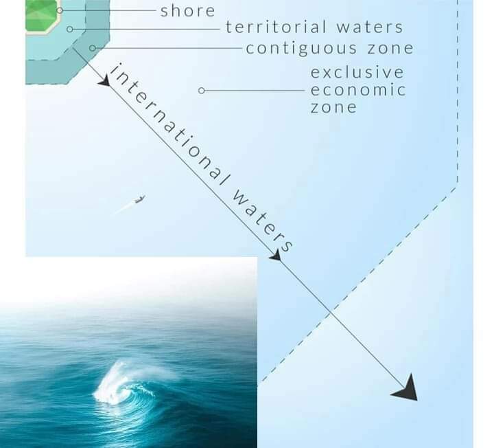 একটি দেশ তার উপকূল থেকে ১২ নটিক্যাল মাইলের মধ্যে নিয়ন্ত্রণের অধিকার রাখে। তবে দেশটি তার কাস্টম, অভিবাসন, আর্থিক ও স্বাস্থ্য নিরাপত্তাগত আইন লংঘনের ক্ষেত্রে সংলগ্ন ২৪ নটিক্যাল মাইল পর্যন্ত অংশে লংঘনকারীকে শাস্তি দিতে পারে। সব দেশ তার একান্ত অর্থনৈতিক এলাকার (ইইজেড) সব অর্থনৈতিক সম্পদের অধিকারী যা তার উপকূল থেকে ২০০ নটিক্যাল মাইল (৩৭০ কিলোমিটার) পর্যন্ত বিস্তৃত।