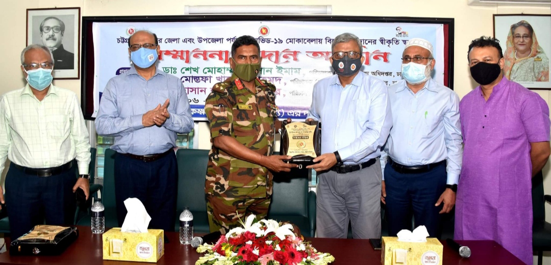 চট্টগ্রাম বিভাগের জেলা ও উপজেলা পর্যায়ে কোভিড-১৯ মোকাবেলায় বিশেষ অবদানের জন্য স্বীকৃতি স্বরূপ সম্মাননা প্রদান অনুষ্ঠান ২৭ জুন রোববার বেলা ১২টায় নগরীর সিনেমা প্যালেস সংলগ্ন চট্টগ্রাম বিভাগীয় স্বাস্থ্য পরিচালক কার্যালয়ের সম্মেলন কক্ষে অনুষ্ঠিত হয়।