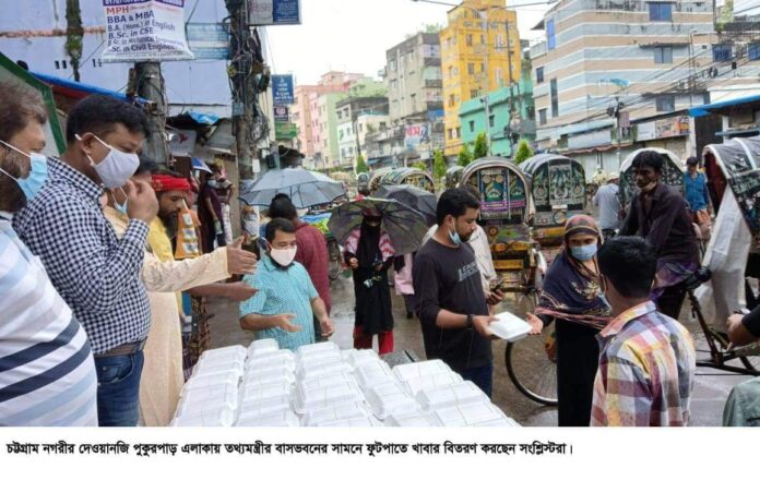 মানুষ মানুষের জন্য। তথ্যমন্ত্রীর বাসায় তৈরি খাবার বিতরণ হচ্ছে চট্টগ্রামে
