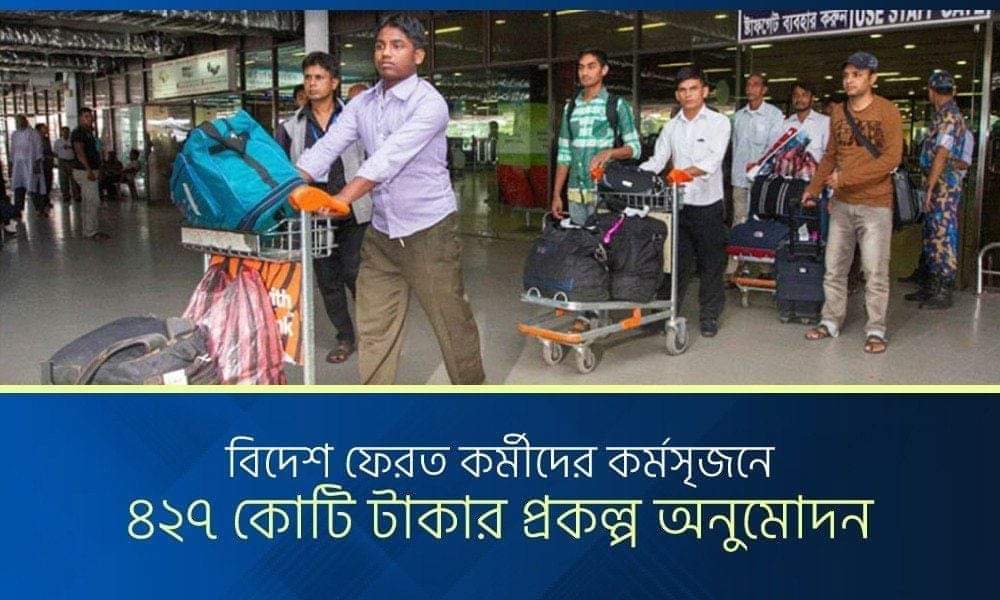 কোভিড-১৯ মহামারির প্রভাবে দেশে ফেরত অভিবাসী কর্মীদের কর্মসংস্থানের উদ্যোগ নিয়েছে সরকার। এ লক্ষ্যে অনানুষ্ঠানিকখাতে কর্মসংস্থান তৈরিতে জাতীয় অর্থনৈতিক পরিষদের নির্বাহী কমিটি (একনেক) ৪২৭ কোটি ৩০ লাখ টাকা ব্যয়ে একটি প্রকল্পের অনুমোদন দিয়েছে।
