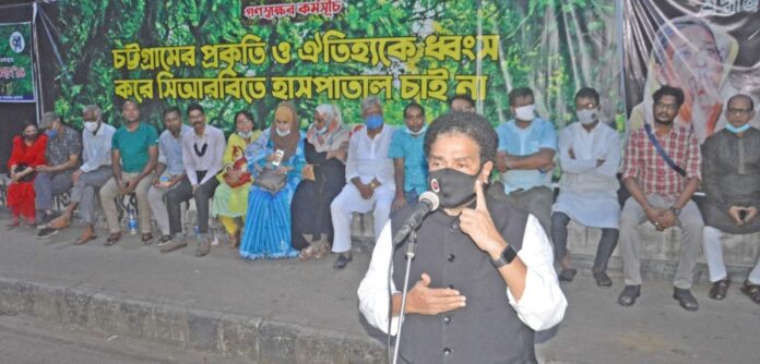 তিনি বলেন  আমরা অবশ্যই হাসপাতাল চাই। তবে পরিবেশ প্রকৃতি ধ্বংস করে নয়। চট্টগ্রামে রেলওয়ের আরো অনেক পরিত্যক্ত জায়গা রয়েছে। সেখানেই হাসপাতাল হতে পারে।   যারা জনপ্রতিনিধি হয়ে জনগণের বিপক্ষে অবস্থান নেয়, আমি মনে করি তারা কোনদিন জনগণের সেবক হতে পারে না। আগামীতে এ ব্যাপারে আরও সুস্পষ্ট বক্তব্য রাখবো। এতে কিছু যায় আসে না। আমরা জনগণের পালস বুঝি। আমরা জনগণের জন্য রাজনীতি করি। আমাদের বুকে ছোরা চালাতে আমরা দেবো না। সিআরবি আমাদের ফুসফুস। সিআরবি ধ্বংস করা মানে আমাদের বুকে ছুরি চালানো। আমাদের জীবন থাকতে সেটা আমরা করতে দেবো না।