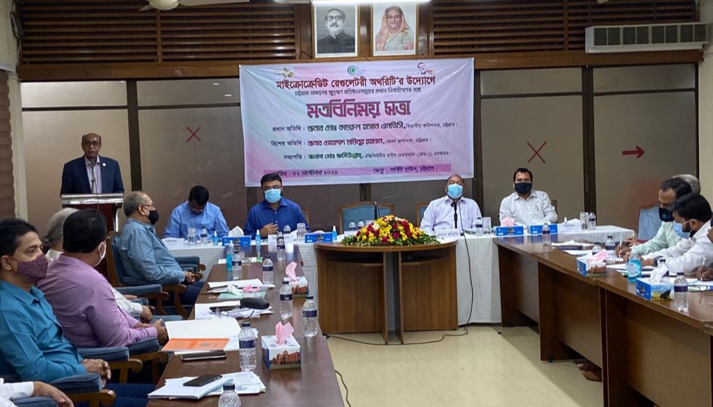 শনিবার( ২ অক্টোবর) দুপুরে মাইক্রোক্রেডিট রেগুলেটরী অথরিটি’র উদ্যোগে চট্টগ্রাম সার্কিট হাউসে চট্টগ্রাম অঞ্চলের ক্ষুদ্রঋণ প্রতিষ্ঠানের প্রধান নির্বাহীগণের সাথে মতবিনিময় সভায় উপরোক্ত মতামত ব্যক্ত করা হয়। অনুষ্ঠানে অথরিটি এর এক্সিকিউটিভ ভাইস চেয়ারম্যান মোঃ ফসিউল্লাহ্ এর সভাপতিত্বে প্রধান অতিথি হিসেবে উপস্থিত ছিলেন চট্টগ্রামের বিভাগীয় কমিশনার মোঃ কামরুল হাসান। বিশেষ অতিথি হিসেবে উপস্থিত ছিলেন এডিসি আ.স.ম. জামশেদ খোন্দকার, এমআরএ এর পরিচালক মোহাম্মদ মাজেদুল হক ও মোঃ নূরে আলম মেহেদী । এসময় অথরিটি উপপরিচালক মোহাম্মদ আবদুল মান্নান, মুহাম্মাদ শাহজালাল সহ জেলা প্রশাসনের বিভিন্ন কর্মকর্তা উপস্থিতি ছিলেন।
