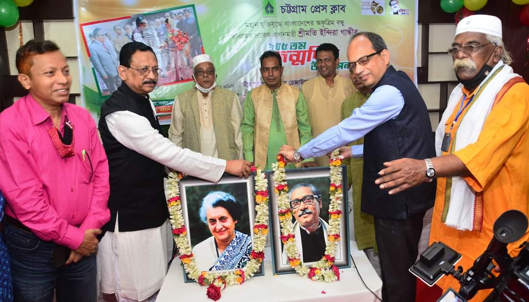 মহান স্বধীনতার সুবর্ণ জয়ন্তীতে মুক্তিযুদ্ধের সময় বাংলাদেশকে সর্বোচ্চ সহায়তাকারী ভারতের সাবেক প্রধানমন্ত্রী শ্রীমতি ইন্দ্রিরা গান্ধীর ১০৫তম জন্মদিন বর্ণাঢ্যভাবে পালন করেছে চট্টগ্রাম প্রেস ক্লাব । আজ ১৮ নভেম্বর শুক্রবার সকালে চট্টগ্রাম প্রেস ক্লাবের এস রহমান হলে আয়োজিত অনুষ্ঠানে প্রধান অতিথি ছিলেন, চট্টগ্রাম সিটি কর্পোরেশনের মেয়র বীর মুক্তিযোদ্ধা এম রেজাউল করিম চৌধুরী। চট্টগ্রাম প্রেসক্লাব সভাপতি আলহাজ্ব আলী আব্বাসের সভাপতিত্বে এবং সাধারণ সম্পাদক চৌধুরী ফরিদের সঞ্চালনায় এতে প্রধান আলোচক ছিলেন ভারতের সহকারী হাই কমিশনার শ্রী অনিন্দ্য ব্যানার্জী। অন্যান্যদের মধ্যে বক্তব্য রাখেন, বীর মুক্তিযোদ্ধা আবুল হাশেম, চট্টগ্রমে প্রেসক্লাবের সিনিয়র সহ সভাপতি সালাউদ্দিন মো: রেজা, বিএফইউজের সহ সভাপতি শহীদুল আলম, যুগ্ম সাধারণ সম্পাদক মহসিন কাজী, সিইউজের সাধারণ সম্পাদক ম শামসুল ইসলাম।