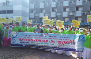 বিশ্ব ডায়াবেটিস দিবস উপলক্ষে সারা দেশের মতো বন্দর নগরী চট্টগ্রামেও চট্টগ্রাম ডায়াবেটিক সমিতির উদ্যোগে , ডায়াবেটিস সেবায় , পার্থক্য আনতে পারেন নার্সরাই এই প্রতিপাদ্যে, শোভাযাত্রা, মানববন্ধন, ও আলোচনা সভার আয়োজন করা হয় । আজ ১৪ নভেম্বর সকালে নগরীর ডায়াবেটিস জেনারেল হাসপাতাল প্রাঙ্গনে শোভাযাত্রা ও মানববন্ধনে প্রধান অতিথি হিসেবে উপস্থিত ছিলেন সিটি কর্পোরেশনের প্রশাসক মোহাম্মদ খোরশেদ আলম সুজন এবং স্বাগত বক্তব্য রাখেন, চট্টগ্রাম ডায়াবেটিস সমিতির সাধারণ সম্পাদক অধ্যাপক জাহাঙ্গীর চৌধুরী। এ উপলক্ষে আয়োজিত আলোচনা সভায়, চট্টগ্রাম ডায়াবেটিস সমিতির সদস্য আবিদা মোস্তাফার সভাপতিত্বে, অন্যান্যের মধ্যে বক্তব্য রাখেন পুষ্টিবিদ হাসিনা আকতার লিপি, চট্টগ্রাম জেলা মুক্তিযোদ্ধা কমান্ডার ও চট্টগ্রাম ডায়াবেটিক জেনারেল হাসপাতালের ট্রেজারার শাহাবুদ্দিন,ডাক্তার নওশেদ আজগর চৌধুরী, ডায়াবেটিস সমিতির জয়েন্ট সেক্রেটারি ইঞ্জিনিয়ার জাভেদ আবসার চৌধুরী,জাফর আহমেদ, মোঃ শহীদুল্লাহ, রকিবুল ইসলামসহ সংশ্লিষ্টরা । সিটি প্রশাসক বলেন, ডায়াবেটিক একটি ঘাতক রোগ এবং সকল রোগের মা হলো ডায়াবেটিক। ডায়াবেটিস রোগীদের মিষ্টি জাতীয় খাবার এবং অতিরিক্ত খাদ্য পরিহার করে ,নিয়মিত হাটাহাটি ও ব্যায়াম করুন।করোনা মহামারী থেকে বাঁচতে হলে স্বাস্থ্য বিধি মেনে চলুন । বড় বড় গরু ছাগল জবাই করে রাজকীয় মেজবান ও অনুষ্ঠান করে ডায়াবেটিসের ঝুঁকি না বাড়িয়ে রাজকীয় মেজবানে অর্থ অপচয় না করে, হাসপাতাল ও সেবা মূলক প্রতিষ্ঠানে দান করুন । তাহলে রাষ্ট্র সমাজ ও জাতি পরিবার উপকৃত হবে । এই সেবা মূলক প্রতিষ্ঠান বাঁচিয়ে রাখার জন্য নগরবাসীর প্রতি আহ্বান জানান তিনি। এর আগে চট্টগ্রাম ডায়াবেটিক জেনারেল হাসপাতালের ডাক্তার ও নার্সদের অংশ গ্রহণে বর্ণাঢ্য শোভাযাত্রা বের হয়ে হাসপাতালের আশপাশের বিভিন্ন সড়ক প্রদিক্ষণ করে হাসপাতাল প্রাঙ্গনে এসে সমাপ্ত হয়।