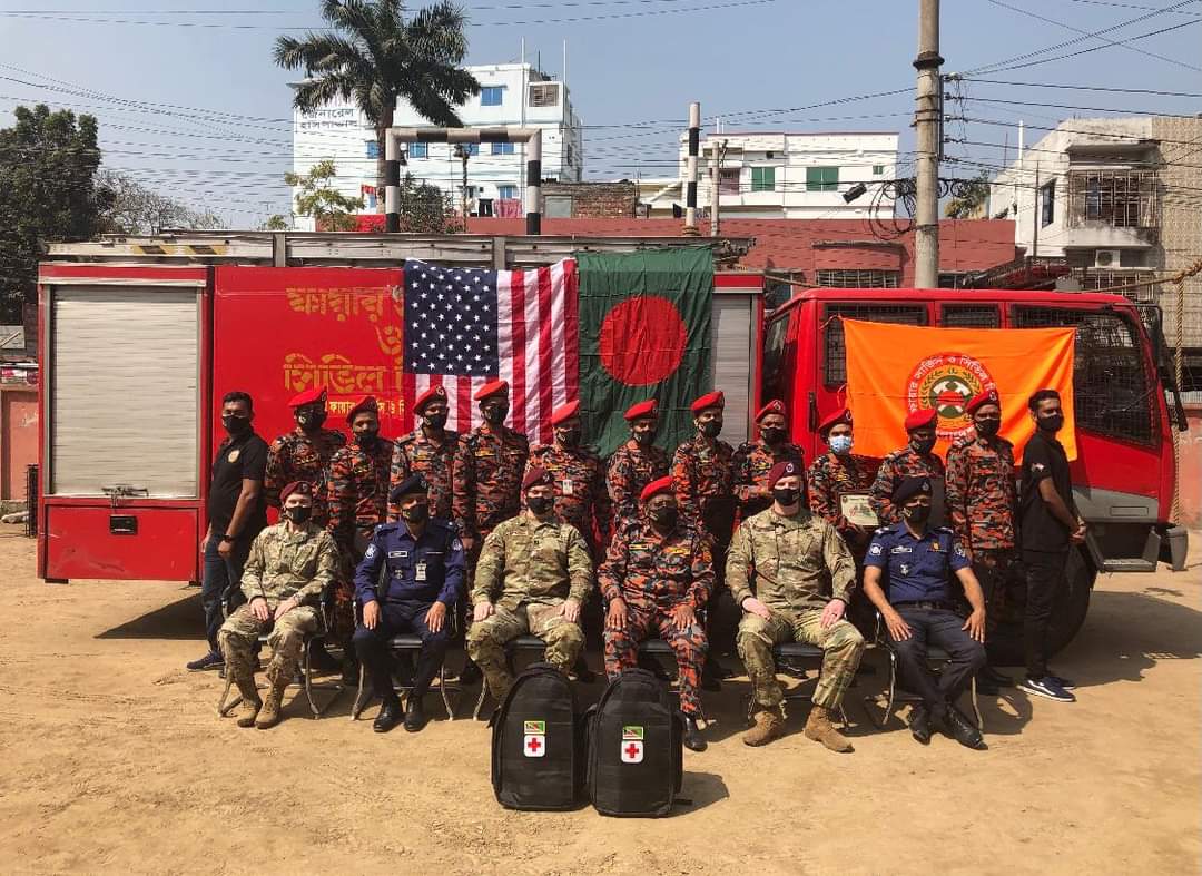 আমেরিকা যুক্তরাষ্ট্রের U.S. Department of Defense (DoD)এর বিশেষজ্ঞ চিকিৎসক এবং রাজশাহী মেট্রোপলিটন পুলিশ (RMP) রাজশাহীর ফায়ার সার্ভিস অ্যান্ড সিভিল ডিফেন্স ডিভিশনের ১০ জন কর্মকর্তাকে মেডিকেল ফার্স্ট রেসপন্ডার প্রশিক্ষণ দিয়েছে। এই প্রশিক্ষণে তারা জরুরি অবস্থা ও প্রাকৃতিক দুর্যোগে তাৎক্ষণিক চিকিৎসার মাধ্যমে সম্ভাব্য প্রাণঘাতি ও গুরুতরভাবে জখমের শিকার যেমন ব্যাপক রক্তক্ষরণ, আঘাতজনিত মানসিক সমস্যা, থার্ড ডিগ্রি পোড়া মানুষের জীবন রক্ষা এবং আহত ব্যক্তির শ্বাস-প্রশ্বাস চালু রাখতে কীভাবে সহায়তা করতে হবে তা শিখেছেন। এছাড়াও প্রত্যেক কর্মকর্তাকে বাংলাদেশ থেকে সংগৃহীত জরুরি চিকিৎসা সরঞ্জামসমৃদ্ধ ফার্স্ট-এইড কিট দেয়া হয়।৷ জানা যায়, যুক্তরাষ্ট্রের বাংলাদেশস্থ দূতাবাস কর্তৃক বাংলাদেশ -ব্যাপী আয়োজিত মেডিকেল ফার্স্ট রেসপন্ডার প্রশিক্ষণে ২০১৪ সাল থেকে এ পর্যন্ত ৬২০ এরও বেশি কর্মকর্তা অংশগ্রহণ করেছেন। আমেরিকা যুক্তরাষ্ট্র ও বাংলাদেশের মধ্যে বৃহত্তর সহযোগিতা, সংলাপ ও পারস্পরিক সমঝোতা বাড়াতে যুক্তরাষ্ট্র সরকারের নেওয়া বিভিন্ন উদ্যোগের মাঝে একটি হলো এই মেডিকেল ফার্স্ট রেসপন্ডার প্রশিক্ষণ।
