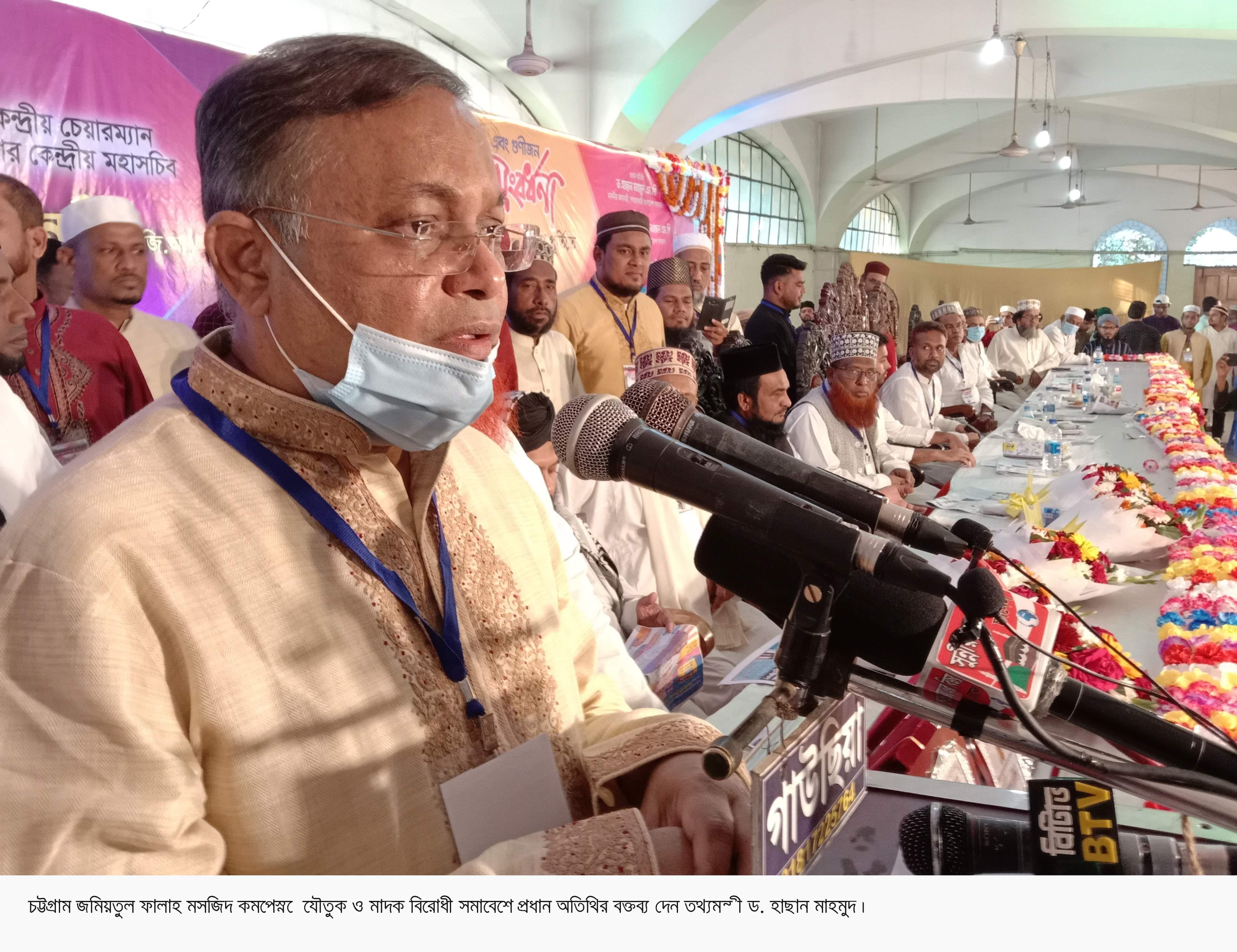 শনিবার (৬ মার্চ) বিকেলে চট্টগ্রাম জমিয়তুল ফালাহ মসজিদ কমপ্লেক্সে আন্জুমানে রজভীয়া নূরীয়া বাংলাদেশ আয়োজিত যৌতুক ও মাদক বিরোধী মহাসমাবেশে প্রধান অতিথির বক্তব্যে তথ্যমন্ত্রী এসব কথা বলেন।